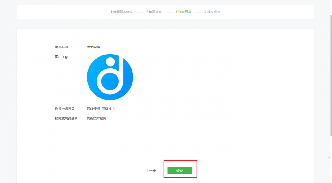 3、填寫完成后點擊提交,等待微信官方審核通過
